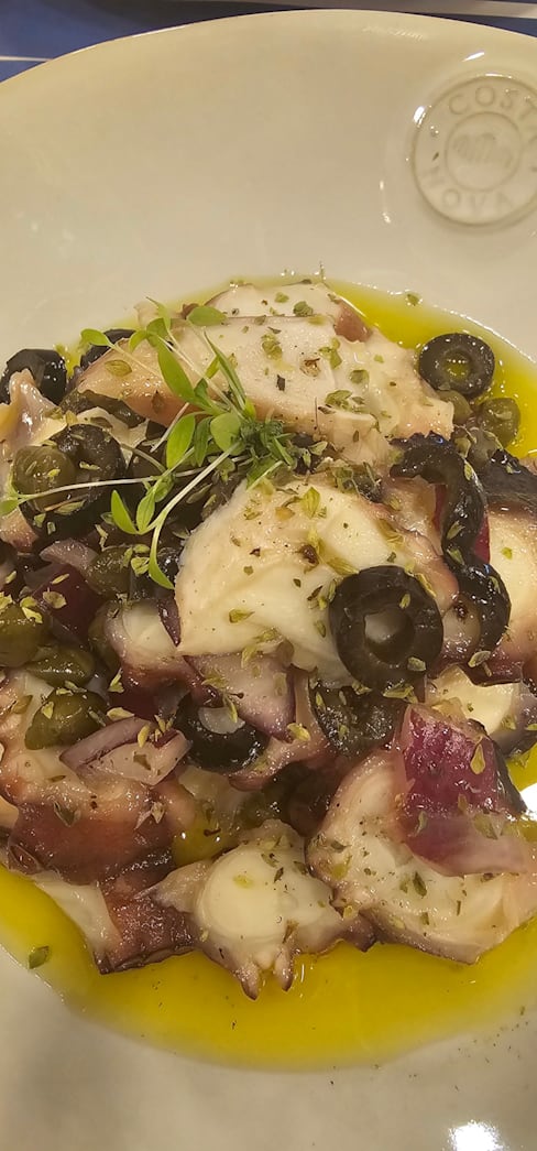 the octopus salad was amazing and all 3 of the croquettes. it's great to be able to choose what wine you like from the shop and just pay €5 extra