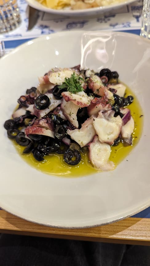 10/10+1the octopus salad was amazing and all 3 of the croquettes. it's great to be able to choose what wine you like from the shop and just pay €5 extra