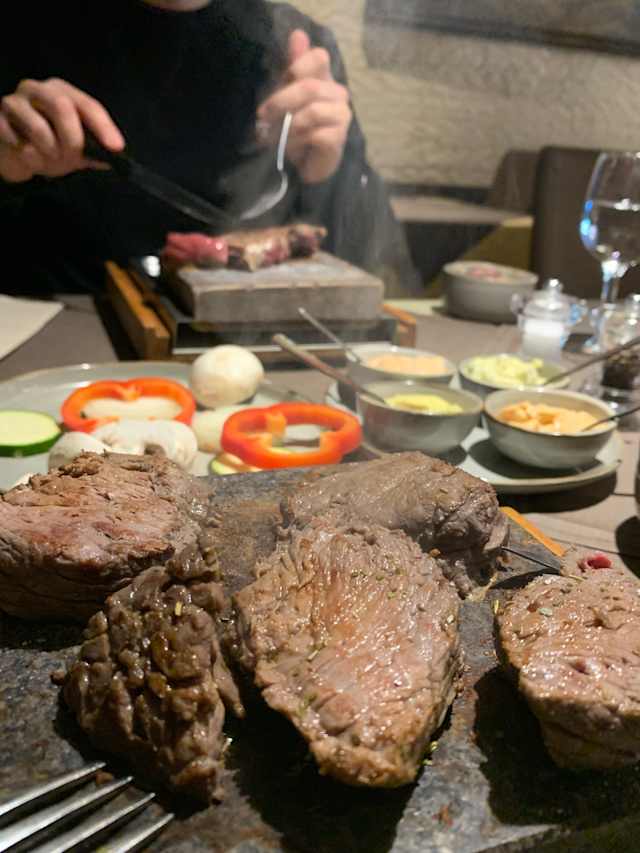 - Bœuf, porc, chicken, lam, merguez and chipolata with 4 sauces and french fries or gratin dauphinois