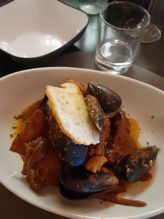 - Polpo piastrato su crema di patate allo zafferano e melograno