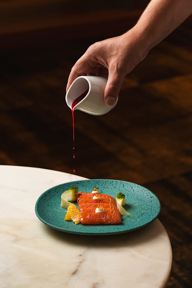 Tártaro de rubia galega maturada, gema a baixa temperatura e tostas rústicas