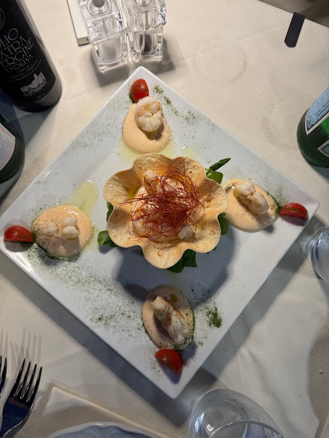 6/10The sea bream was delicious. The pasta was ok. Be careful about what you order, 2 gin and tonics was €56. Many things without prices on the menu can run up the price. Overall I would look elsewhere.