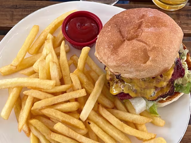 - Cotoletta fatta in casa, insalata, pomodori, cheddar, bacon, ketchup e maionese