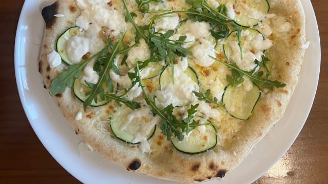 Zucchini, garlic, soft cheese, lemon zest (no marinara)