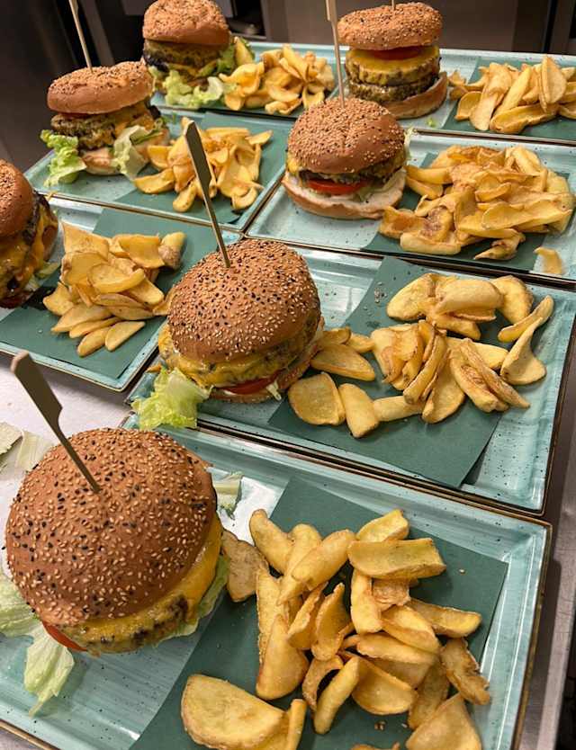 - Chickenburger con patatine fritte