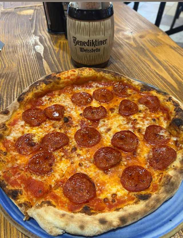 - Pomodoro, mozzarella prosciutto, funghi, salamino piccante