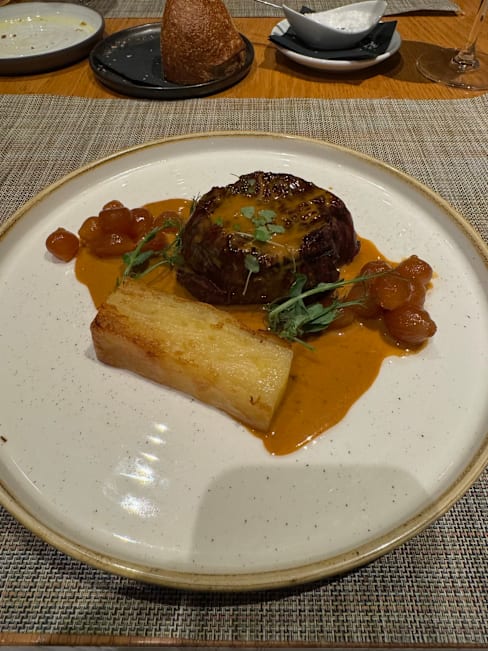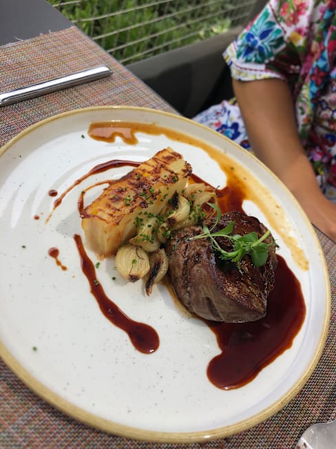 9.5/10Very nice restaurant with great service. Even menus in French. The hotel is also nicely located with a view. Special mention on the meat cooking that was perfect.