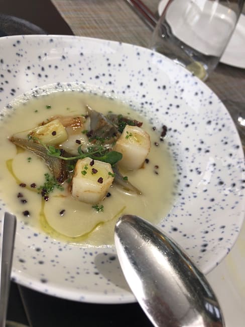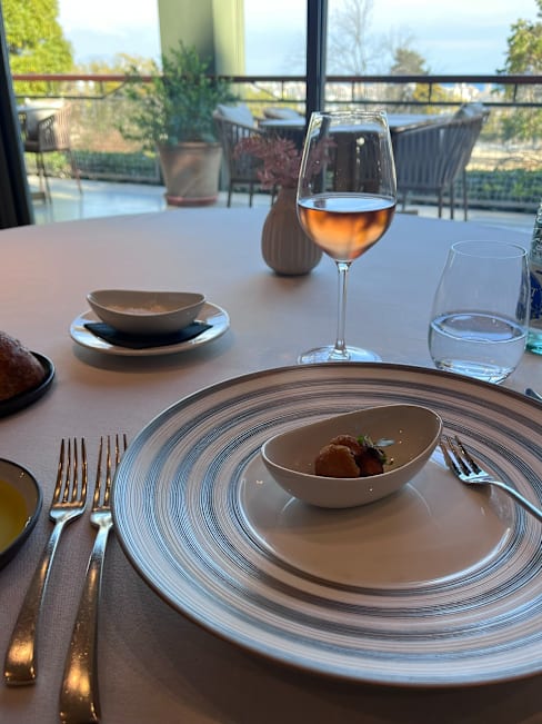 9.5/10Excellent lunch and excellent service. Our servers Fleur and Eric were particularly good and deserve recognition for outstanding service. We sat on the terrace outside with beautiful views but it is shaded and today became a little chilly.