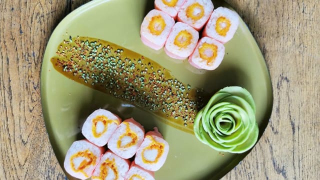 - Chair de crabe, masago, concombre, oeufs de hareng, mayonnaise aux agrumes