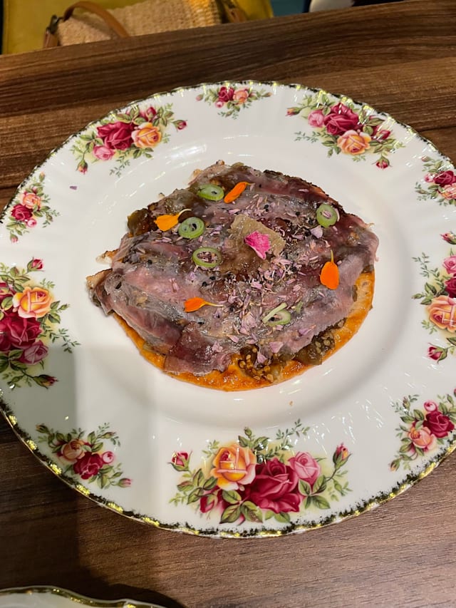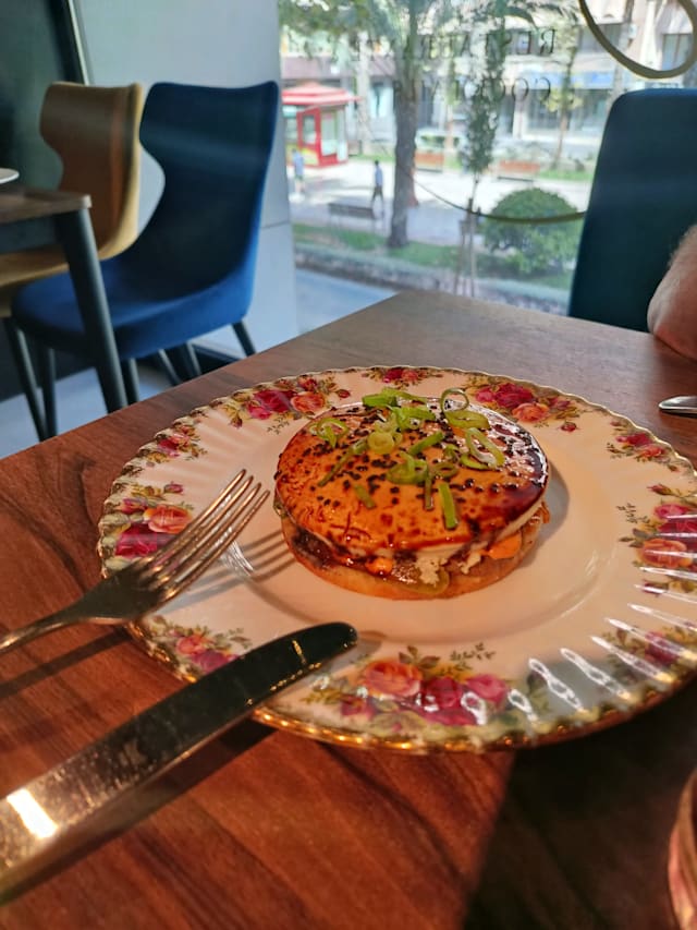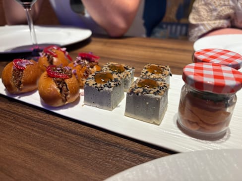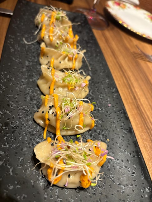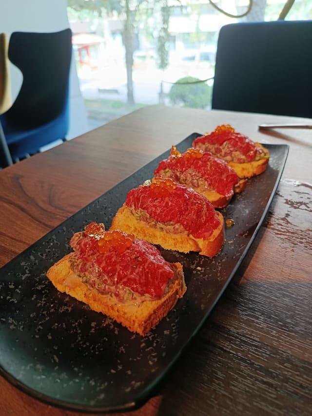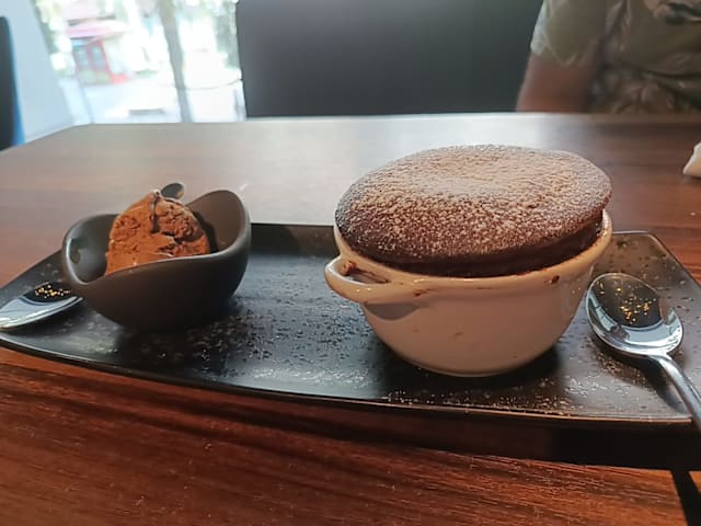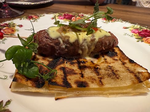 7/10+5The food was delicious, beautifully served and flavoursome. Service was less, they still have a lot to learn. Cocktails, virgin mojito and pornstar martini, amounted to nothing. My pornstar was white and is supposed to be the colour of passion fruit. Toilet nice and clean. Restaurant nice. At one point the owner came in and was wearing ‘sleffers’. That one walked around the restaurant there constantly with ‘clanking’ shoes. Very irritating