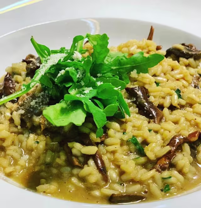 - Cogumelos salteados com bacon, ervas aromáticas e parmesão.