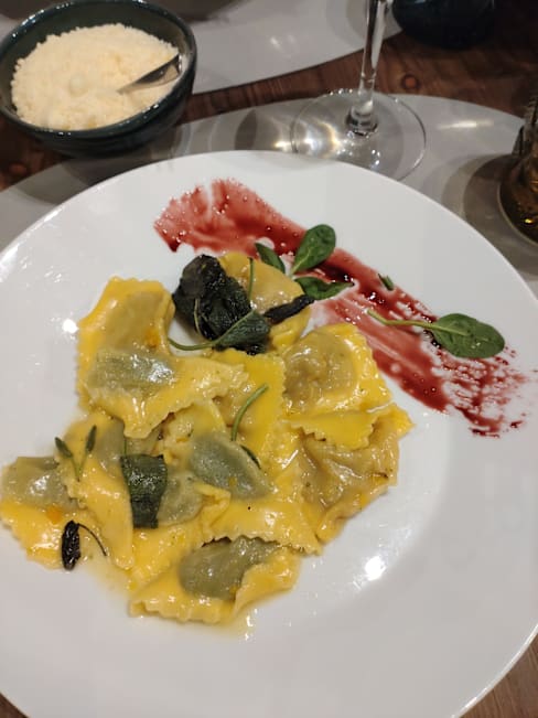 3/10Pumpkin tortellini that tasted of nothing but amaretto and artichoke fusilli that tasted of nothing at all. Stale bread. Our complaint was met with the most aggressive and hostile response from the owner I’ve had in my 40+ years of restaurant going and reduced my daughter to tears. They need lessons in manners. I expect this review will elicit a rude response from the restaurant but if I can spare just one person from this poor quality food it will be worth it.
