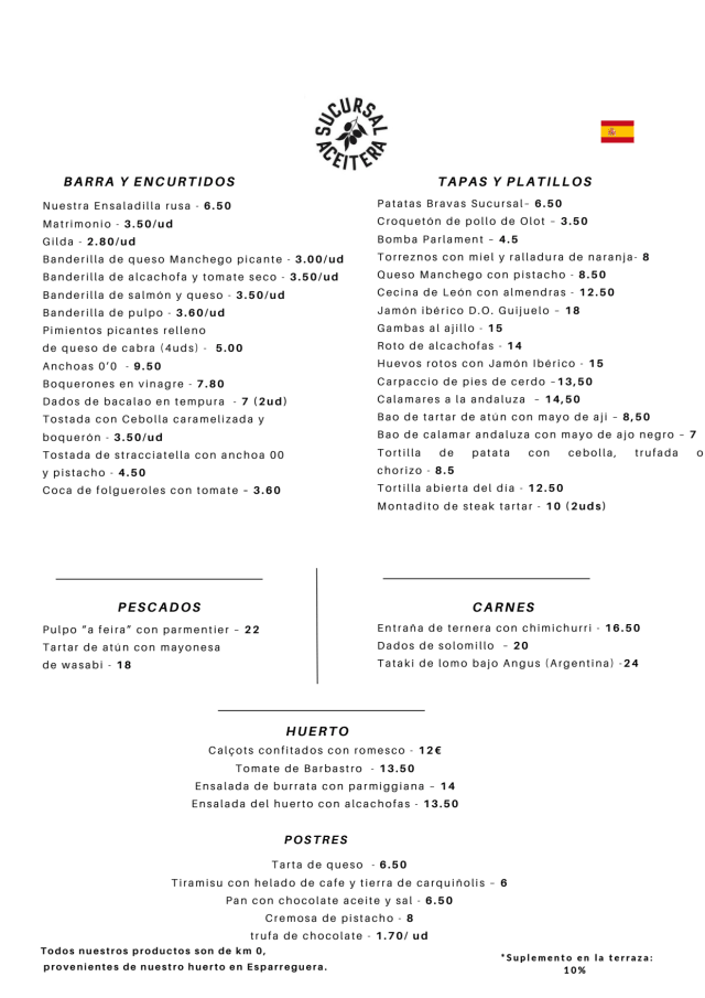 9.5/10I have eaten here several times over a couple of years. Great food in a causal environment and the staff is very friendly. Their recommendations are often to be trusted. The have the usual tapas but also some varied items on the menus that are riffs of tapas fare. Their bravas are still my favorite in Barcelona. On this visit they recommended the artichoke dish - which was outstanding. Its a bit far away from me otherwise this would be my go to spot.
