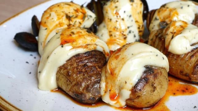 9.5/10One of our all time favourite restaurants in Barcelona! Their variation on bravas is really great! All other tapas are also prepared with great attention to detail and delicious.