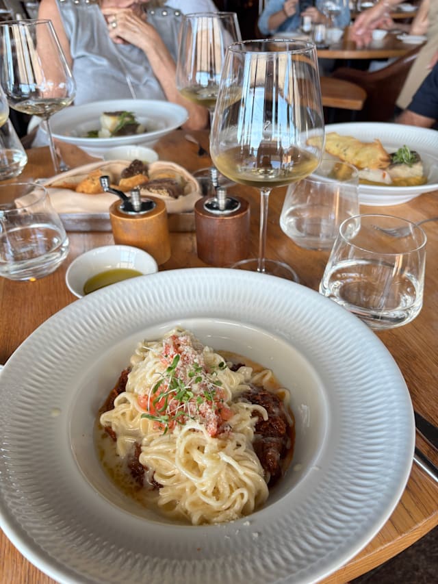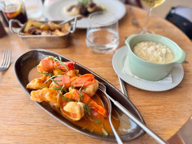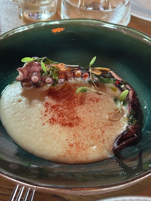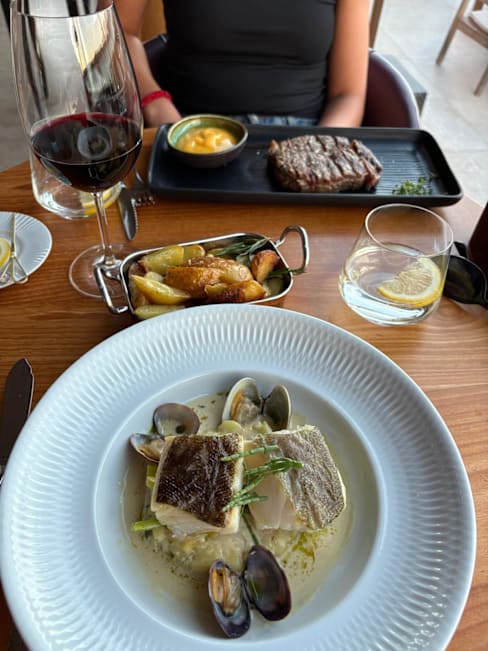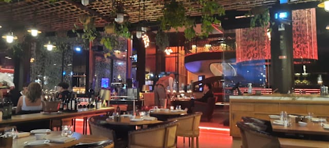 7/10The service is polite but not exactly attentive – often slow, if not very slow. The atmosphere is pleasant, though the music is rather loud and the sheer size of the room creates quite a bit of noise. The food, however, is disappointing and overpriced: easily 50% higher than some Michelin-recommended restaurants. The slow-cooked cod is decent, but nowhere near the incomparable version of Chef Luis Calei. Worth stopping by for a cocktail, perhaps, but otherwise best avoided. An overpriced tourist trap.
