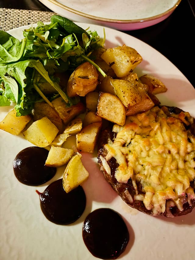 9.5/10I was travelling solo. So I was looking for a centrally located restaurant . I didnt eat all day so I spoiled myself and had 2 appetizers (the seafood croquettes & warm mozzarella & Prosciutto pastry shells). And proceeded to order the steak as my main, followed by dessert. All was delicious. Minus point was the air conditioning that was too cold blowing down my neck. Asked for it to be lowered, but "it" didn't work. Staff was very attentive, spoke English.