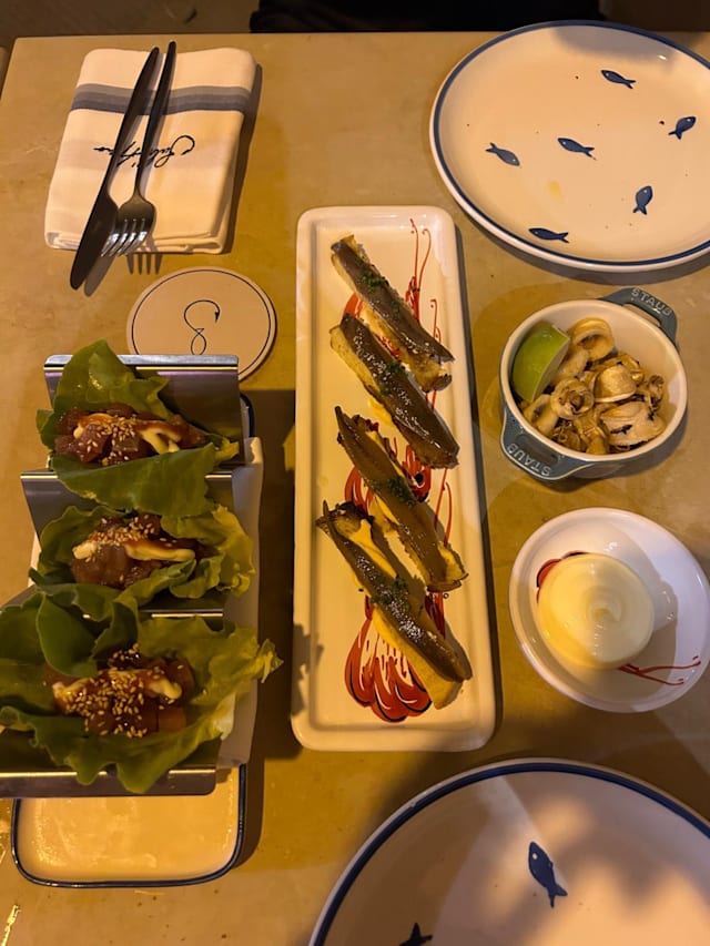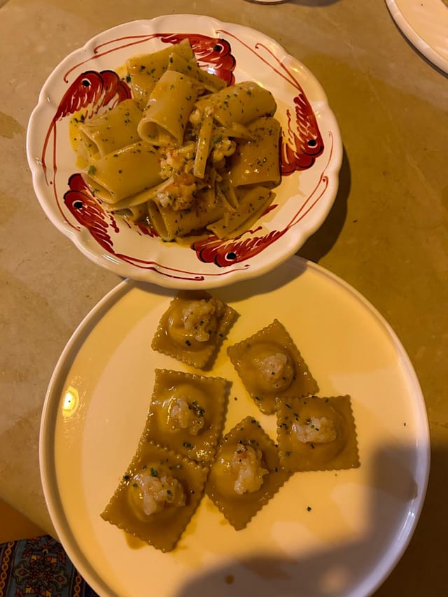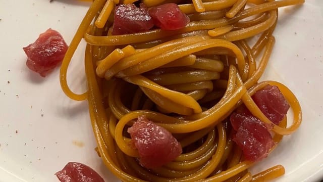 7.5/10The restaurant itself is very nice. We had some starters but they didn’t come all together and then we waited more than an hour for the mains. They offer us a bottle of wine for the wait which was nice and brought some olives and chips to eat but once the mains arrived, the spaghetti with the tartare were cold and dry. The Paccheri and the dish of the day were actually the nicest ones. The ravioli, not very tasty. Once we made it notice they said the paccheri takes longer to cook than the spaghetti and this must be the reason. I would assume a chef knows the time of cooking of their own menu and should act accordingly. Lastly our friend who arrived early stated they offered him 2 glasses of wine while waiting for us but at the end was on the bill (and we arrived only 20 min later) . They should have been clear with this. Pricey overall. We spent 60€ each