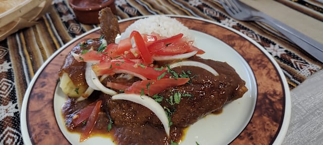 8.5/10For us it was the first time when we tried bolivian food and we were quite impressed. The restaurant is nice, decorated with typical bolivian decorations and the waitress explained us the menu. We tried salteña which was delicious, lapping (the beef was quite hard to chew but the plate was tasty overall), the pollo a la canasta which was good and the tarta de choco. The portions were really generous, I was unable to finish my plate.