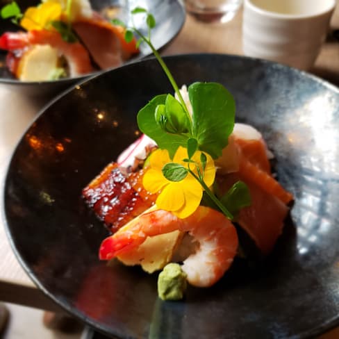 7/10We went with a lunch menu which was 28 euros for one appetizer and one main dish. I took the chirashi as a main dish which had a 3 euros supplement. it was nothing special and the portion was very small. There are other places that has very similar things for better value.