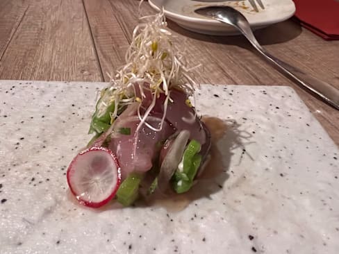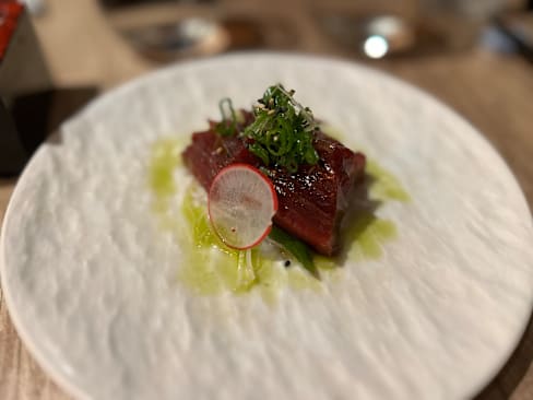 4/10We ordered the chef’s secret menu expecting the chef to really amaze us with creativity and thoughtfulness for the price but I think the chef decided to trick us instead. I’m sorry but I never want to have deep fried tiny sardine type fish in a Japanese restaurant. This secret menu didn’t include a single piece of raw fish that wasn’t swimming in some type of heavy citrus or vinegar based sauce, so the fish itself was hard to recognize or taste. Then they gave us raw beef to cook over charcoal at the table which filled the whole restaurant with smoke, not an experience I wanted and really not very enjoyable.