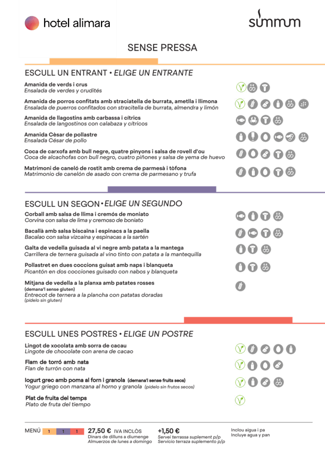 Menú de Lunes a Domingo€27.5 per guest