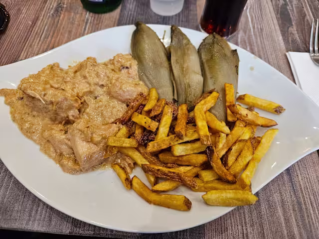 - Le traditionnel émincé de poulet au maroilles ou miel/moutarde