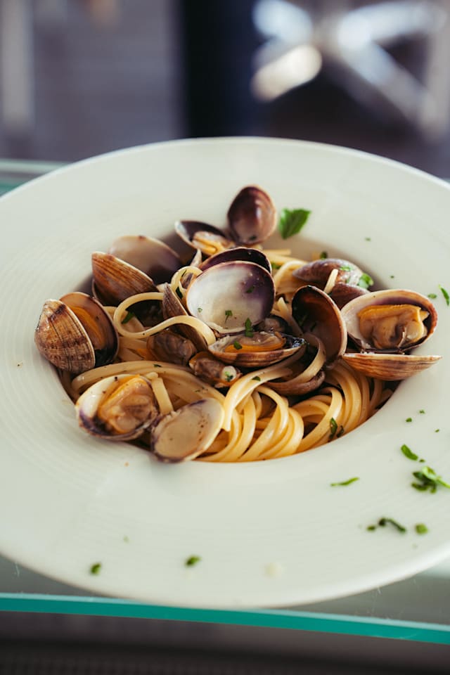Linguine avvolte da vongole veraci saltate in olio extravergine con sfumatura di vino bianco