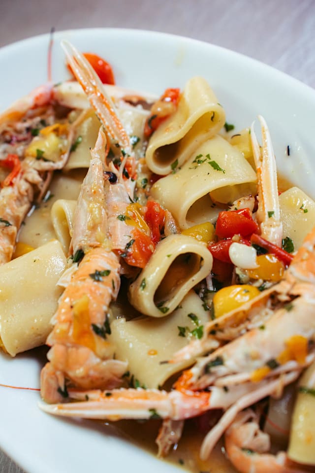 Pasta fresca avvolta da scampi saltati in olio extravergine e prezzemolo