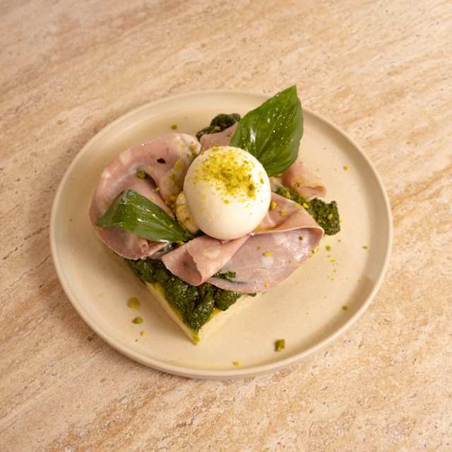 - Pesto, mortadela italiana, burrata e pistachio