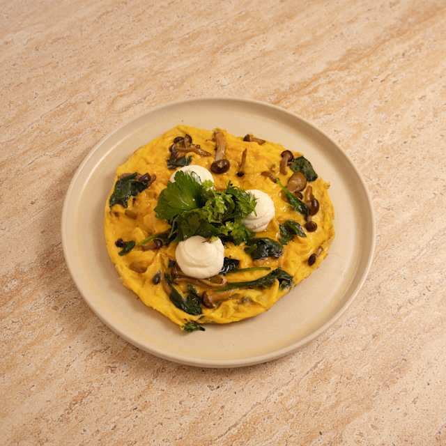 - Espinafre, cogumelos, creme de ricota e ervas frescas