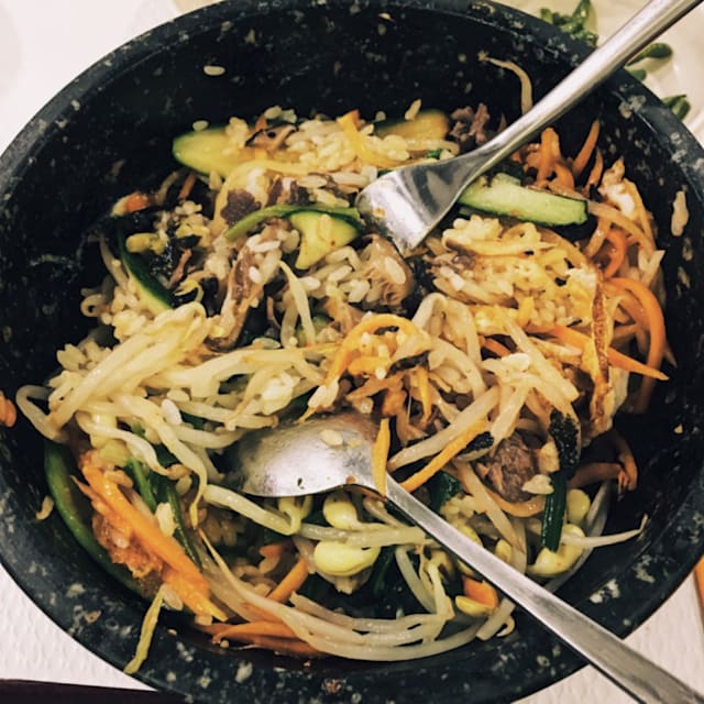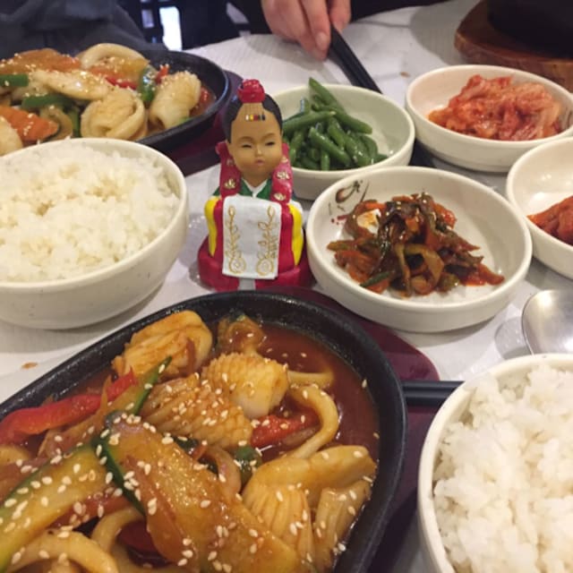 8.5/10Tiny restaurant, therefore on the cosy side, warm welcome- korean dishes authentique and good though not spectacular. Menu quite gramd with also Japanese cuisine. Would go again.