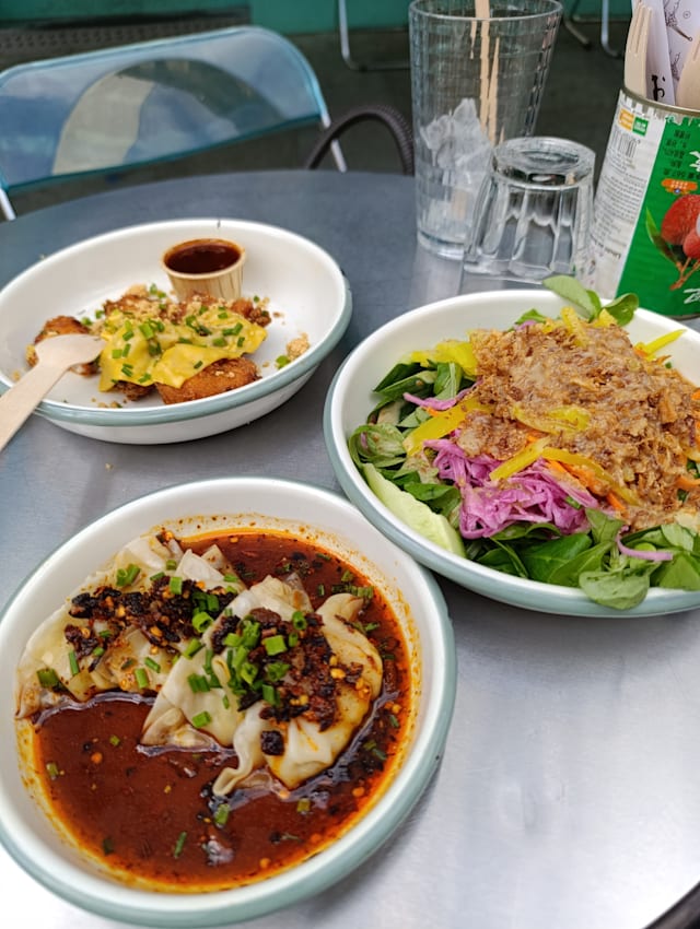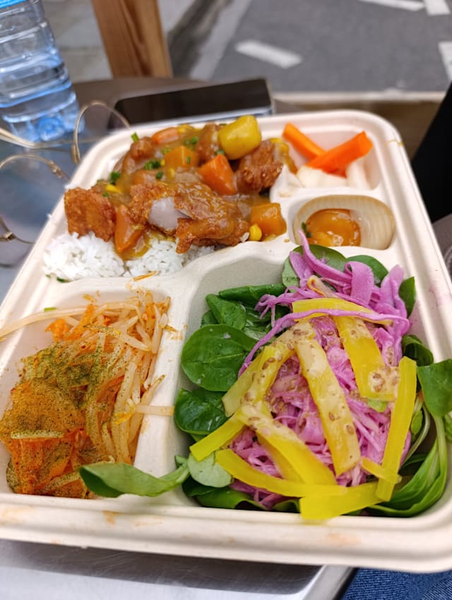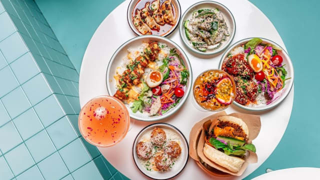 9/10+2There's too much frying when processing the meat. Of course, the dishes are attractive due to the sauces, but it's unlikely to be considered a healthy meal. From the limited selection, I would recommend the dumplings, which are delicious. The kimchi is also good. The burger with chicken and kimchi is absolutely delicious. However, the salad is weak and poorly prepared. Overall, the food is tasty, but it's important to know what to order. Additionally, the bathroom door is broken and doesn't close properly, which is inconvenient for customers.