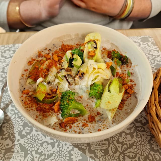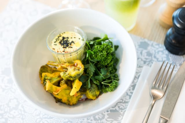 8.5/10Wonderful settings to have lunch. A variety of veggie dishes to pick from. The one we tested were tasty and well executed. Service was efficient and agreable. Have a try to discover!