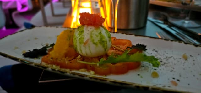 Atmosphere is nice and I would advice to go for an experience. The main dish was quite good and the rest is so-so. The service in general were good, apart from one waitress as she took 10min to come back and ask what we want and then 20min to bring the bottle of wine. After 20 min we told here where is our wine and it was sitting at the bar in front of and she said with a face like yeh it is at the bar and coming. Like we have to go there and serve our self. She was concentrated more serving first her friends etc. The performance is good and DJ have done a fantastic job. In general I would advice visiting at least for ones but nothing special to come back.