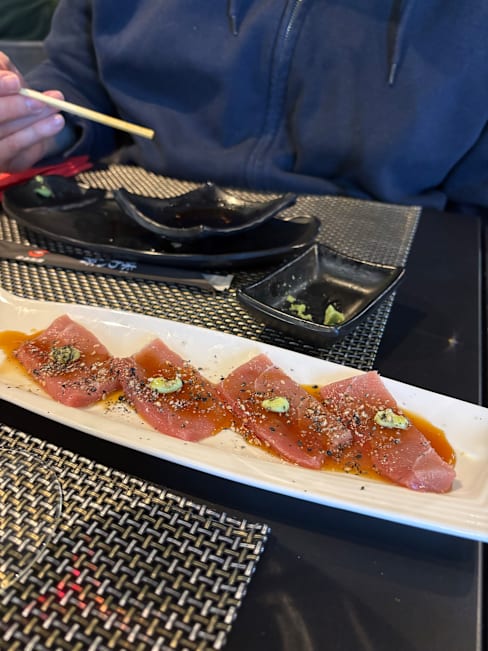 7/10Sashimi was good, though tuna sashimi arrived seared. But Salmon tartar was with mango and rice, which was not great, and the hot rolls were not as expected as well. The service was fast.