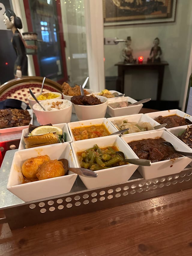 10/10We had the Surakarta Rijstaffel for 2. We did not finish the meal as it was just too much food! The waitress packed our leftover without any extra charge. We also appreciated the hot water refill on our ginger tea! The foods are great, and quite authentic Javanese. It is a bit on the sweeter side, but that is just how Javanese Indonesian food is! During our stay they had to turn away a couple of groups simply because they were really full at 6pm! So definitely get a reservation before coming.