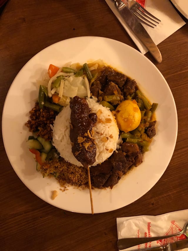 9/10Nice place with pleasant atmosphere good food, tasty and quite typical Indonesian :-) Reasonable prices and plenty in quantity. Overall good experience. As coming from France it s always very surprising how early (21h30?) the “kitchen close” in dutch restaurant ... be aware, don t wait for the end of the meal to order dessert.