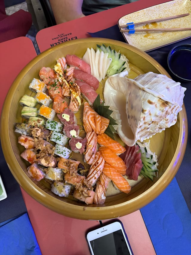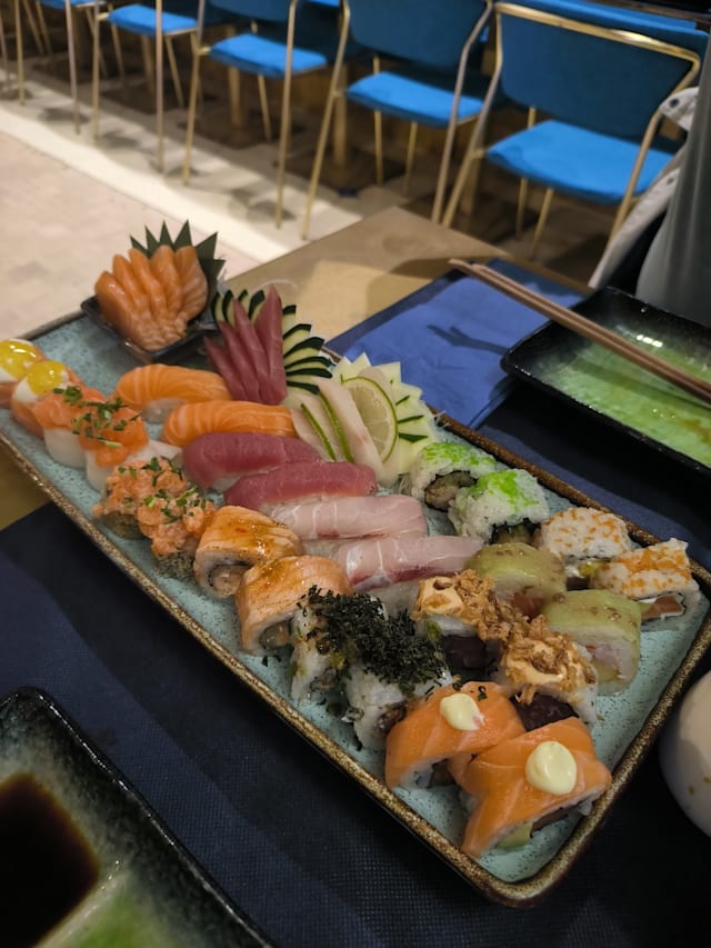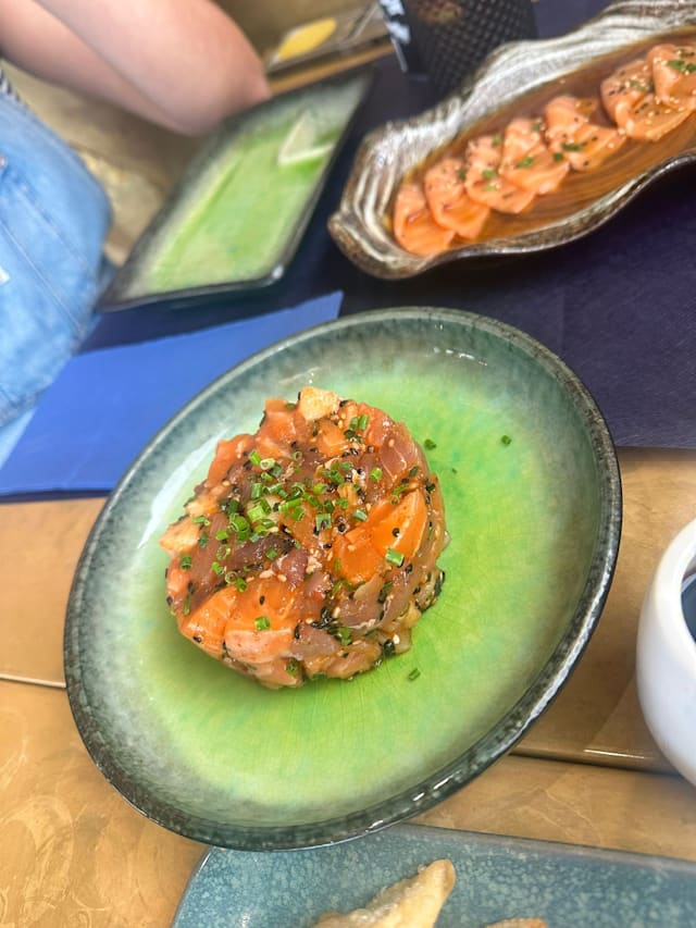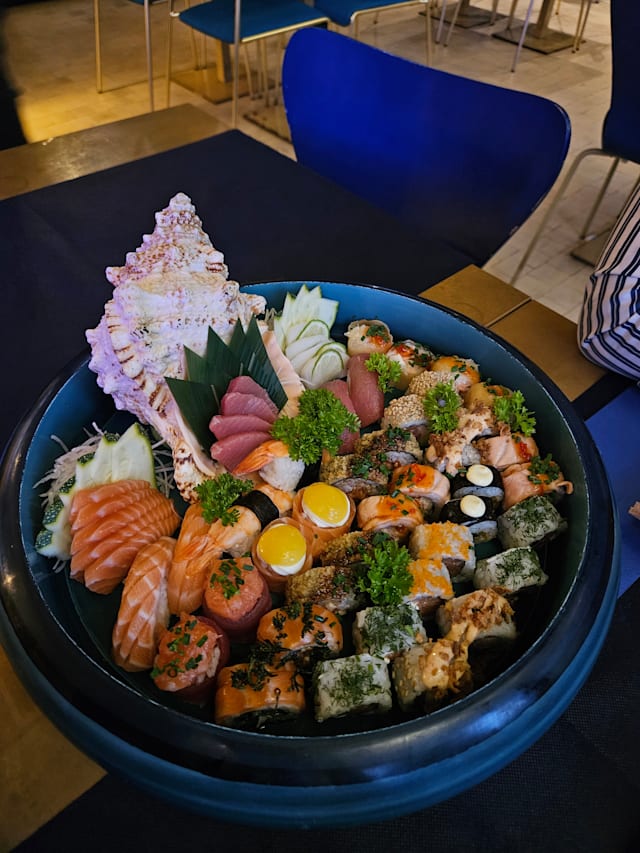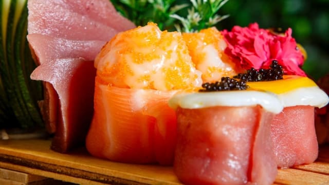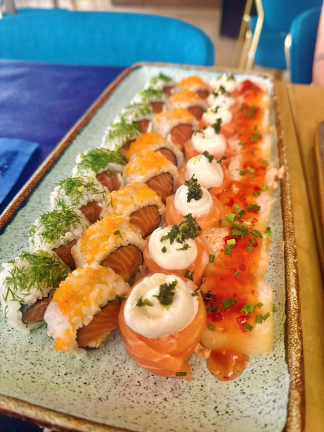 5.5/10First of all, when we arrived we were completely ignored by the waiter and the waitress who literally passed in front of us pretending not seeing us. I know the staff might be busy, but a simple greeting with this sentence " Hi, just a moment" is absolutely fair! Secondly, we came to this restaurant to try the menu "Degustation", what a pain, the starters were nice but lot of fries (probably for you not to repeat many times the sushis afterwards but this is for most of the degustation menus), the salmon tartare was good, they also combined sashimi salmon and pesto which I did not like at all. Regarding the main course, simple uramaki cream and salmon with dill in the rise? I am really into creativity when it is about sushis but again this is not a good combination, 2 other urumakis with a kind of "paté" of salmon, outch.... The nigiris, sashimis, makis and gunkan were good, around 24 pieces total. No avocado for any of them, if you are an avocado lovers, do not go! As they mentioned on the offer, you can repeat, however, we asked for exactly the same and they started bringing pieces by pieces and you need to wait for them, be careful kitchen is closing... We have also asked if we could have urumakis without dill, answer was absolutely no! Well, disappointing, we will not come back.
