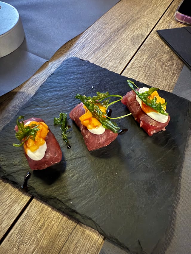 10/10+1Absolutely splendid! A superb concerto with the food styled after sushi but with excellent meat rather than seafood. Superb service. Superb cocktails. Definitely belongs at the top of any list of go-to spots.