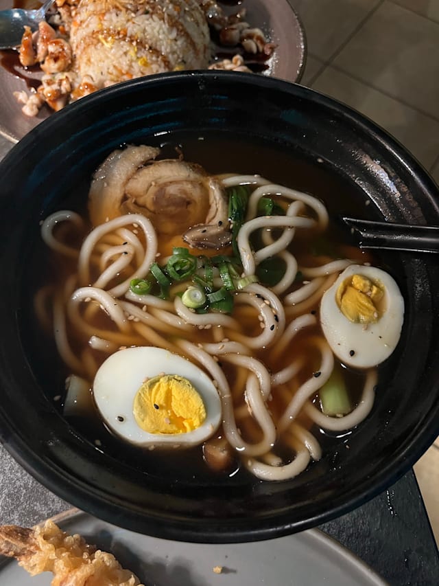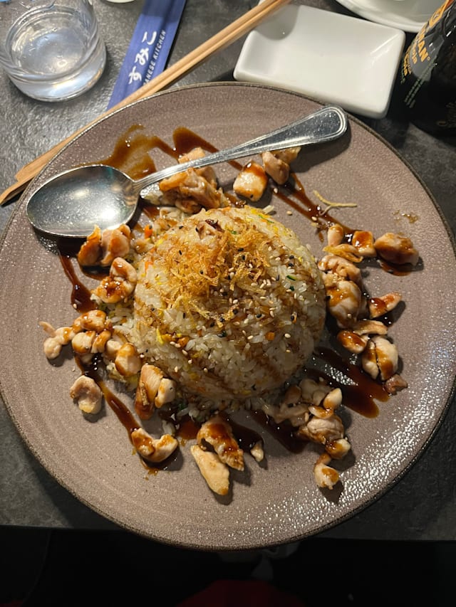 7.5/10We ordered fried rice with chicken. Fried rice was tasty but the chicken was dry and still had bone pieces. Also ordered shrimp gyoza which was very tasy. and rice noodles with chicken was also tasty. Service was good. It was cold in the restaurant. Front dining area was nice, back dining area is not attractive. Also did takeaway maki, which was avarage.