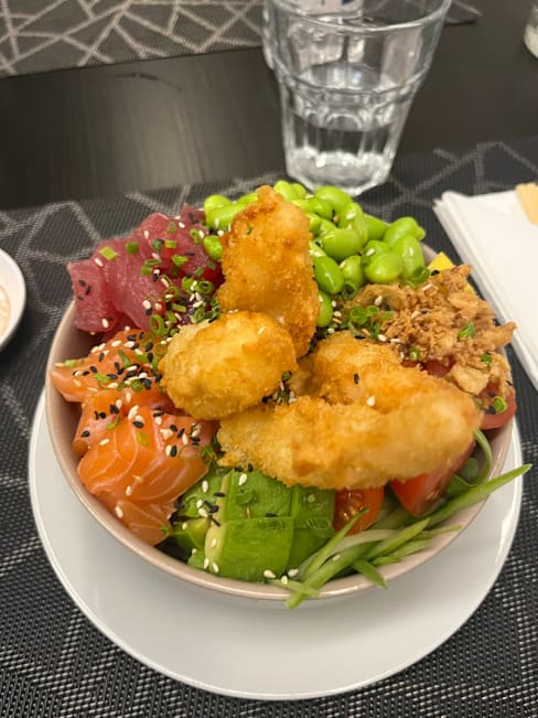 6/10Food was delicious, like outstanding good. The lady that served me on the other hand was clearly having a bad day - she was unnecessarily rude to me when I didn’t even complained about the fact that my poke took 30 minutes to make… after she accused me of not listening her coworker poorly explaining me that the glass water was 50 cent more when I specifically pointed out in the menu which price I wanted. All this because of stupid misunderstanding, and then she kept being sarcastic and trying to poke a reaction out of me - well she finally won, I reacted and explained her what why I thought about all that which she didn’t wanted to listen or even look at me while I speak to her like I did out of courtesy. All she was looking for was an escape goat. Everything else was perfect. Big space like that could benefit from some interior renovation, it would look great to the ambience!