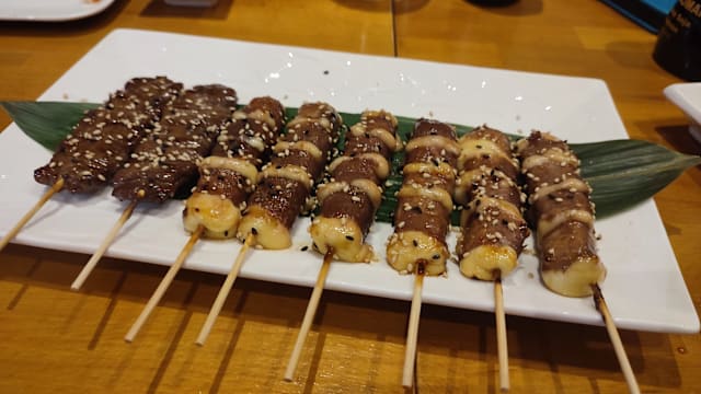 2 soupe, 2 salade, 2 riz 4 assortiment de sushi : 2 saumon, 2 thon, 12 assortiments de sashimi : (3 saumon, 3 thon, 3 daurade, 3 maquereau) 6 california tempura crevette, 6 maki saumon, 8 assortiment de brochettes