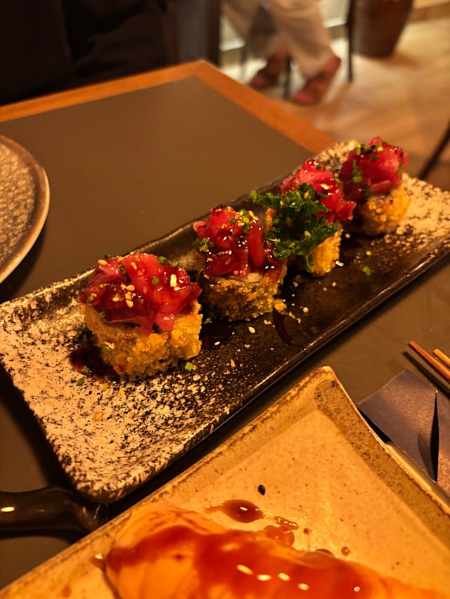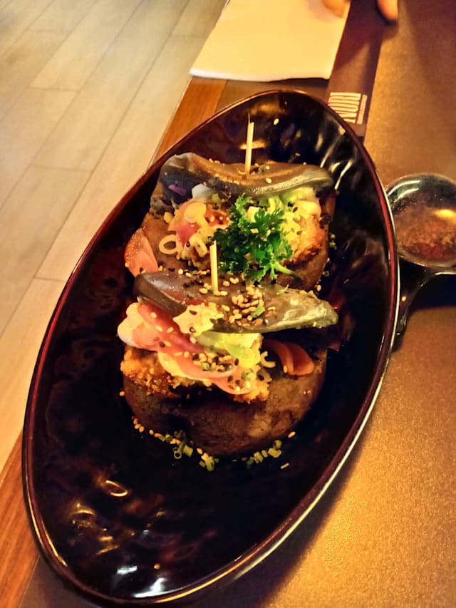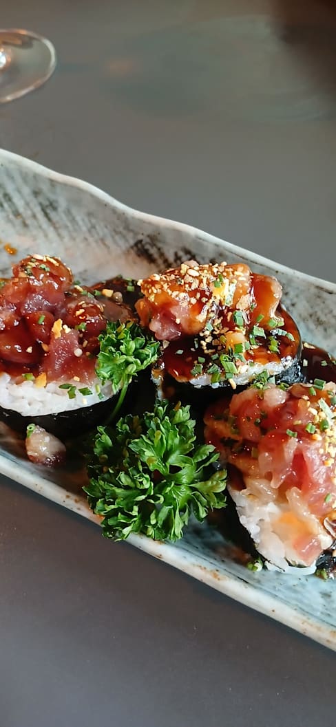 9.5/10+2Really good place to go out and try out some delicious sushi different from everything you've tried before. Recommended the experience despite the waiting time. It was 40min to bring the first dish and after that, they were brought in one by one with space between of 5min.