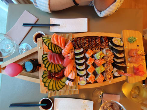 10/10Had the sushi boat (mix sushi for 2)! It was delicious. Nice service. With water and 20% discount we paid 46€.