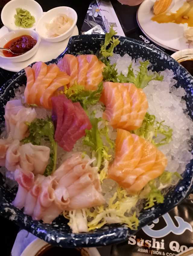 - Philadelphia, salmone, avocado; esterno sesamo, kataifi, salsa teriyaki