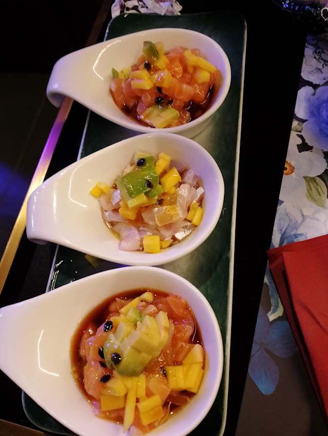 - Gambero tempura; esterno tonno scottato, salsa tartufo, salsa teriyaki