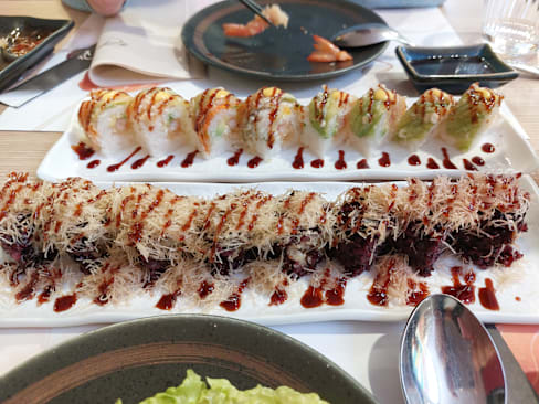 8.5/10I didn't like the seafood ramen because the soup was very fishy, but I liked everything else. I noticed that some items became unavailable with the all you can eat option, such as the prawn salad which disappeared from the digital menu. That's too bad.