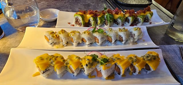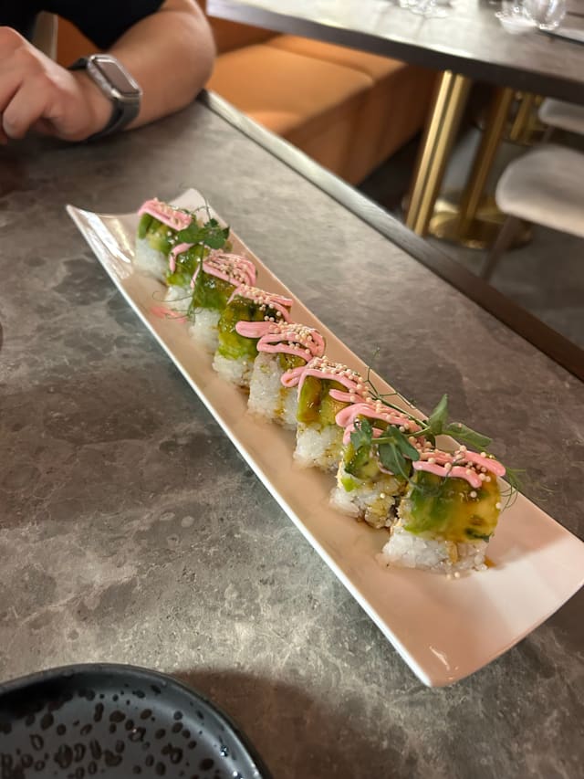 7.5/10Fantastic sushi and a great gluten free restaurant- perfect for celiacs! We visited on a candlelight evening with live piano, and unfortunately the volume of the piano was so loud, almost deafening. The concept of live music and sushi is great - just need to turn the volume down and regulate the music for a restaurant atmosphere.
