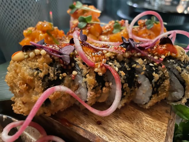 8.5/10Loved the lamb choppo and tempura popcorn. The sushi was good but not outstanding. Reasonable portion sizes and friendly service.