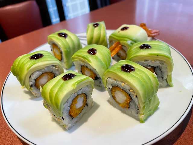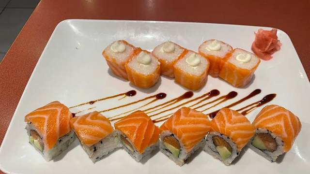 - 6 california saumon avocat, 2 boeufs au fromage, 2 boulettes de poulet, 1 Riz